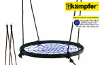 Качели-гнездо Kampfer выполнены из металлической рамы диаметром 100 сантиметров, с дополнительной защитной оплеткой ее бортиков, обтянутых прочным синтетическим канатом выдерживающим нагрузку 100 кг. Плетеное синтетическое сидение качелей удобное и практичное, не собирает грязь и воду, при сильных загрязнениях его можно протереть.