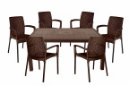 Стильная итальянская мебель для кафе, ресторанов и отелей Nebraska Corner от итальянского производителя B:Rattan включает 2 предмета: угловой местный диван и кофейный столик. Пластиковый комплект порадует любителей плетеной мебели своей фактурой в стиле ротанг и прочностью: максимальная нагрузка на кресло и диван — до 160 кг.