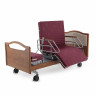 Конструкция кровати включает прочные металлические элементы с деревянными накладками, что гарантирует долговечность и устойчивость даже при максимальной нагрузке. Боковые ограждения обеспечивают безопасность пациента, а четыре двойных колеса с полиуретановыми шинами и индивидуальными тормозами позволяют легко перемещать кровать и надежно фиксировать ее в нужном положении. Мягкие накладки и ортопедический матрас создают дополнительный комфорт для пациента.