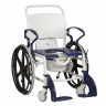 Сиденье, подлокотники и спинка выполнены из мягкого полиуретана – долговечного и простого в уходе материала. Съёмное гигиеническое судно оснащено плотно закрывающейся крышкой. В конструкции предусмотрен мягкий, комфортный подголовник и ремни безопасности.