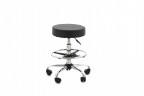 Стул круглый для массажиста, оборудованный газ-лифтом для регулировки высоты. Удобная спинка и кольцо для поддержки ног.